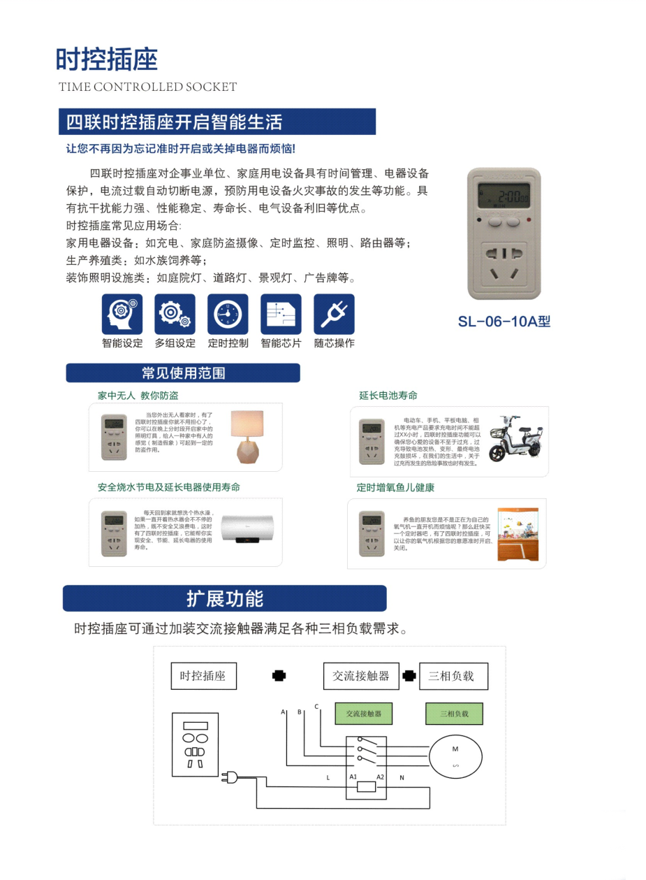 ◎時控插座可通過加裝交流接觸器滿足各種三相負載需求