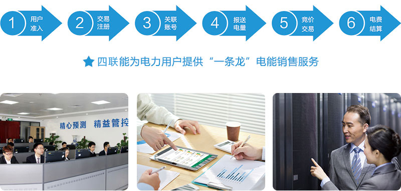 自2015年電改以來;公司已經(jīng)在積極布局,不斷開拓市場,已先后為多家電力大用戶及產(chǎn)業(yè)轉(zhuǎn)移工業(yè)園等園區(qū)用戶提供江西電力市場準入咨詢、大用戶直購電和競價服務,取得了顯著的經(jīng)濟效益。憑借豐富的電力市場經(jīng)驗和專業(yè)的電力交易技術(shù),四聯(lián)能將為更多的用戶提供快捷、便利、優(yōu)質(zhì)的電力市場準入、長協(xié)競價代理及電費結(jié)算等一條龍”的電能銷售服務!